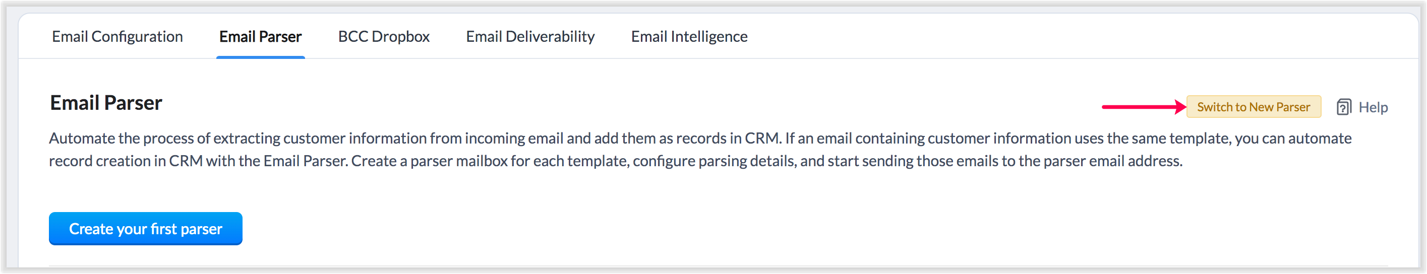 - Mergi la Settings > Setup > Channels > Email > Email Parser și apasă Switch to New Parser.