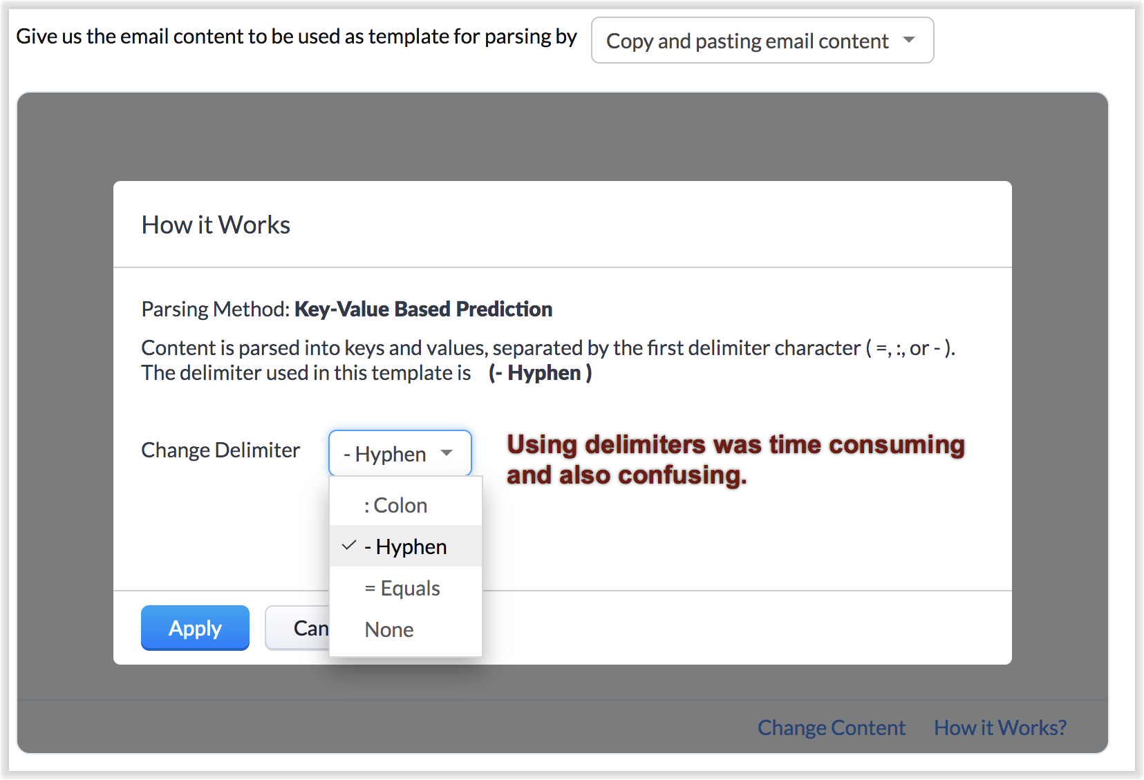 3. Aderența la șabloane rigide | Vechiul parser necesita aderența la formate de șabloane de email foarte rigide, care foloseau delimitatori. Acest lucru făcea configurarea dificilă și uneori eronată. | Noul email parser nu necesită aderența la șabloane foarte rigide — de fapt, configurarea este mult mai simplă, așa că vor fi mult mai puține greșeli decât înainte. |