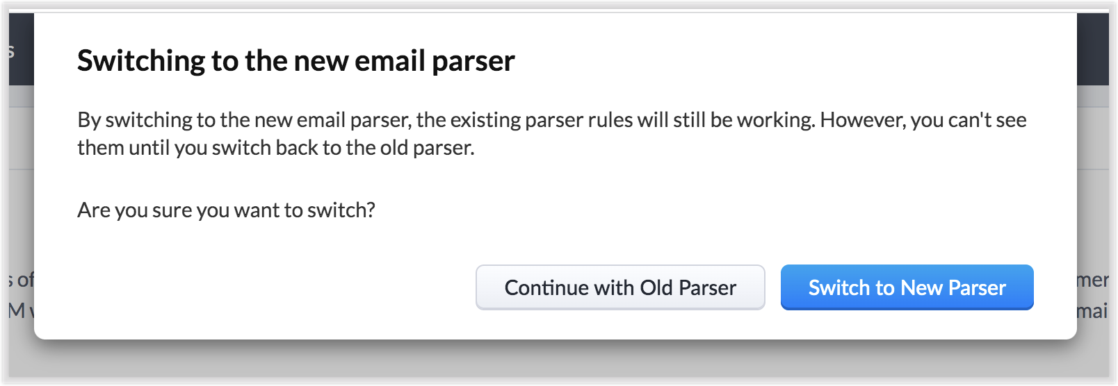 - Confirmă trecerea apăsând Switch to New Parser.