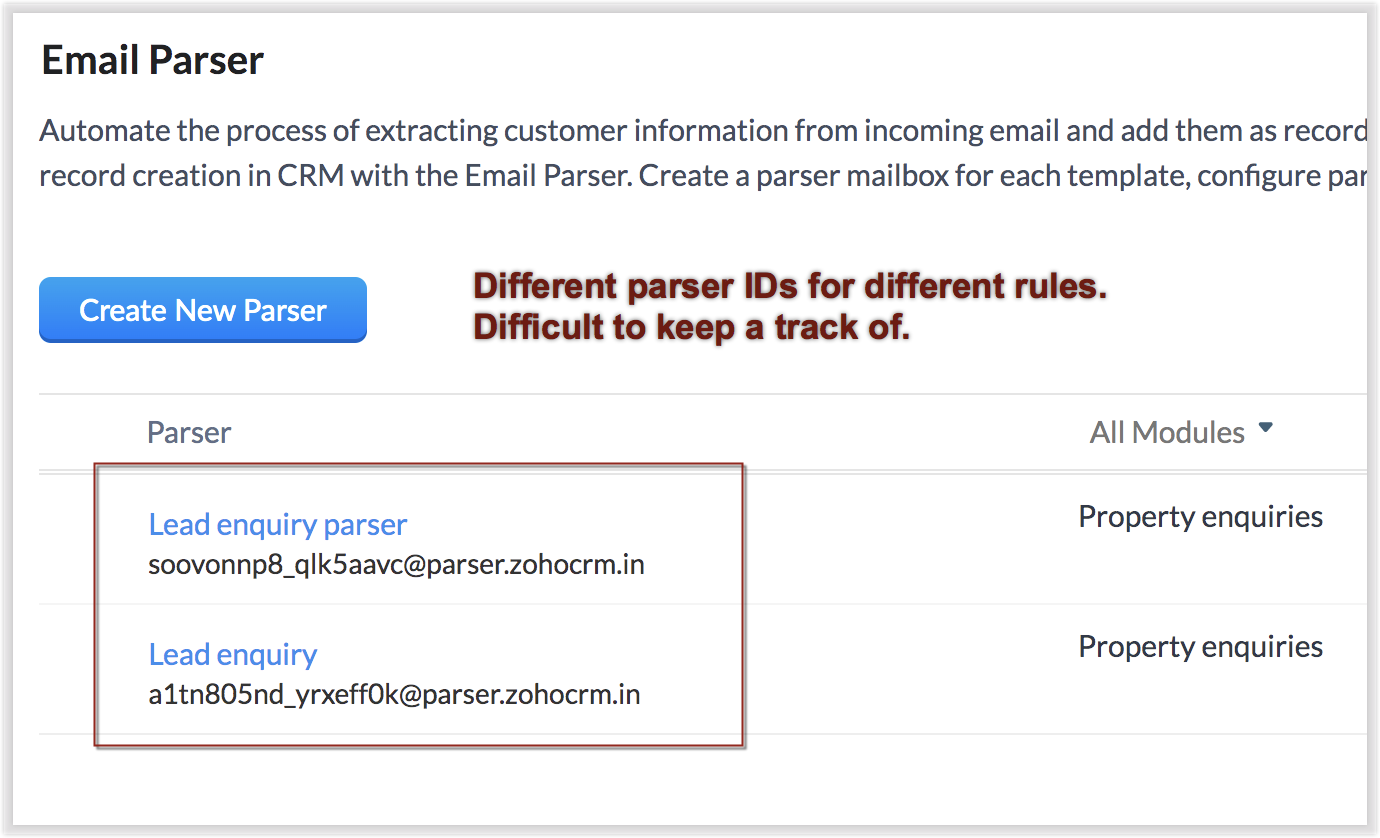 Până acum, este posibil să fi creat mai multe email parser-e pentru email-urile tale primite, pentru a genera înregistrări în diferite module. Având în vedere interesele utilizatorilor noștri, am adus o serie de îmbunătățiri acestei funcționalități, care suntem siguri că îți vor face experiența mult mai bună și mai ușoară.