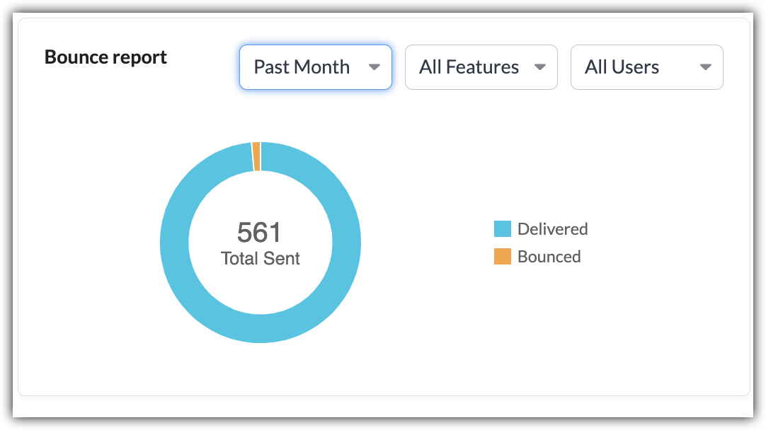 Respingerea emailurilor este un factor important în determinarea scorului tău de credibilitate. Cu cât este mai mare rata de respingere, cu atât scorul tău este mai mic. Raportul de respingeri va afișa numărul total de emailuri trimise și numărul de respingeri sub formă de diagramă circulară.