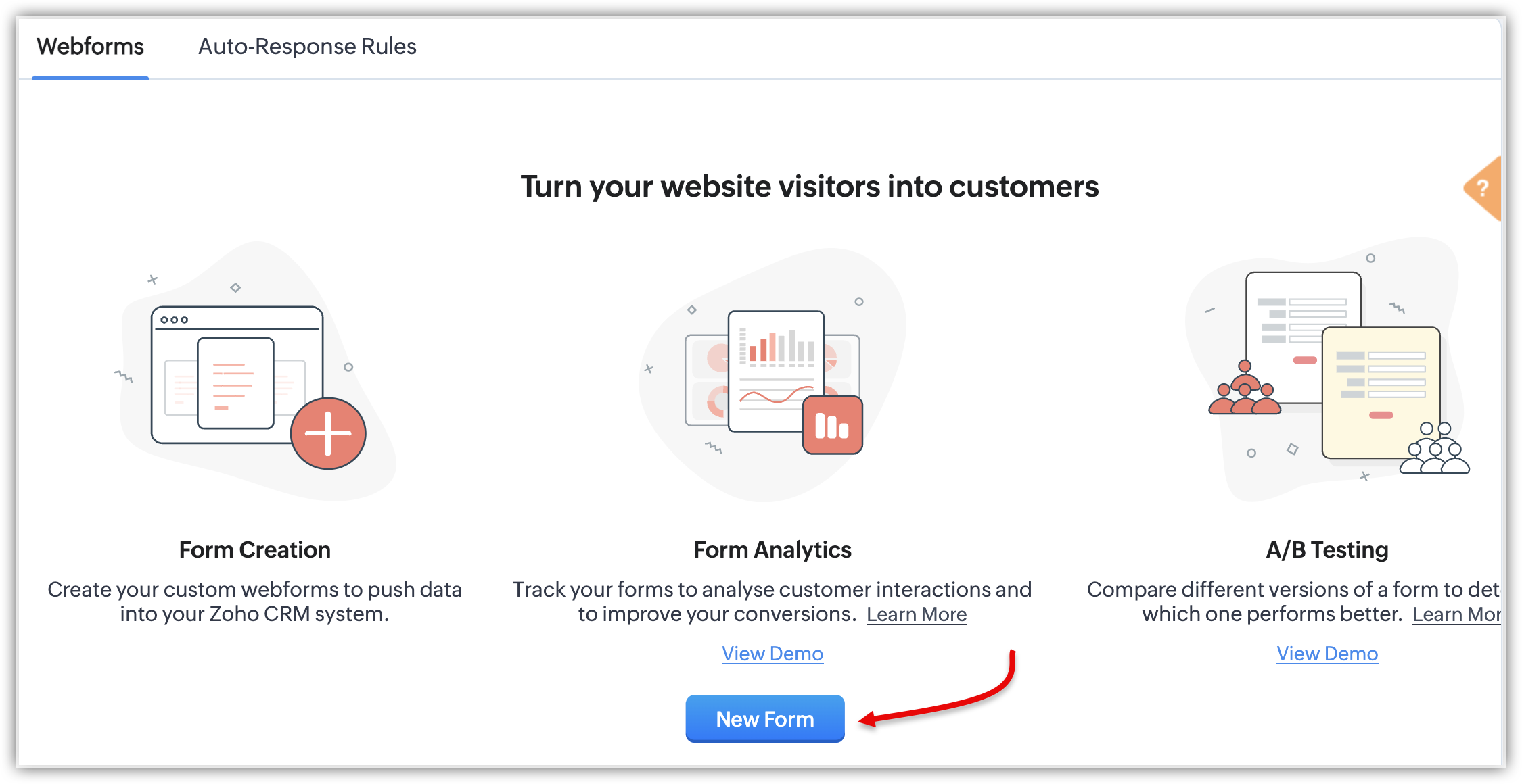 - Apasă Create Webform sau alege unul dintre formularele web existente.