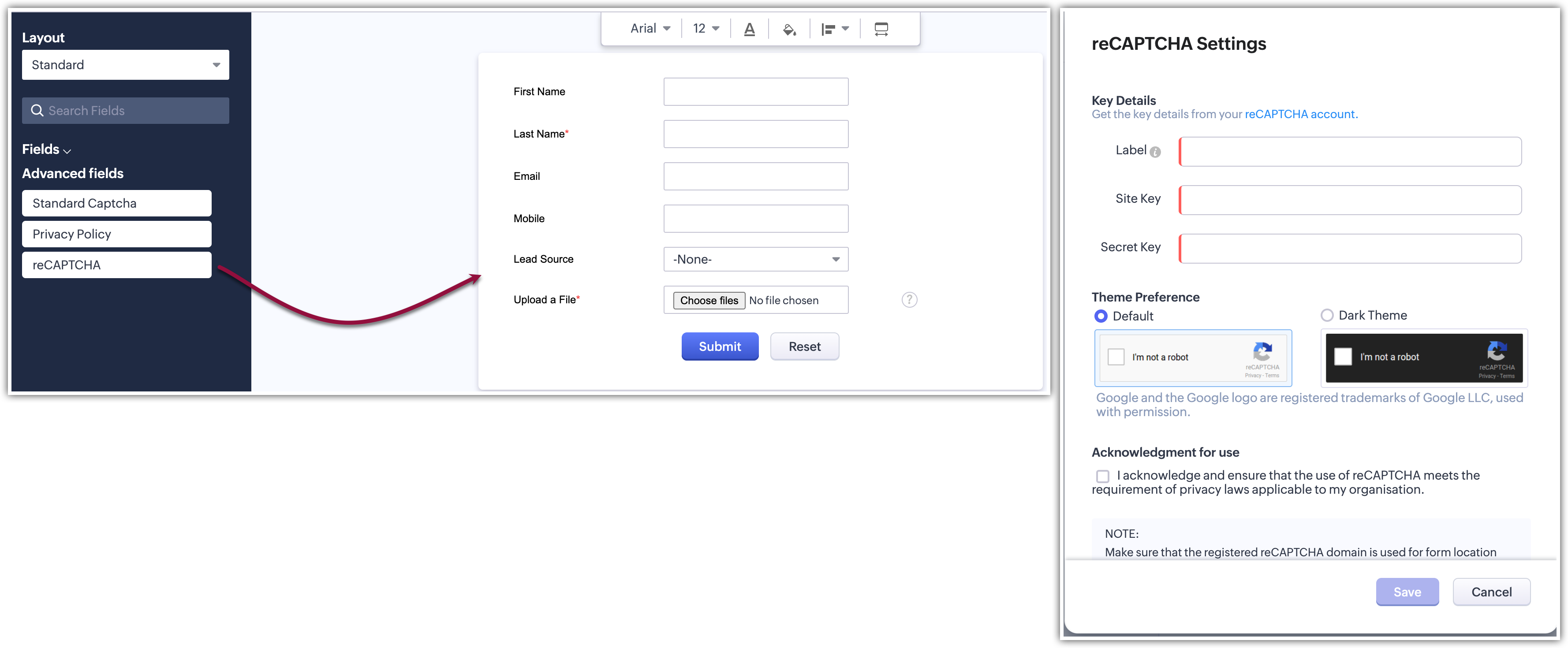 - reCAPTCHA este disponibil în toate edițiile plătite ale Zoho CRM.