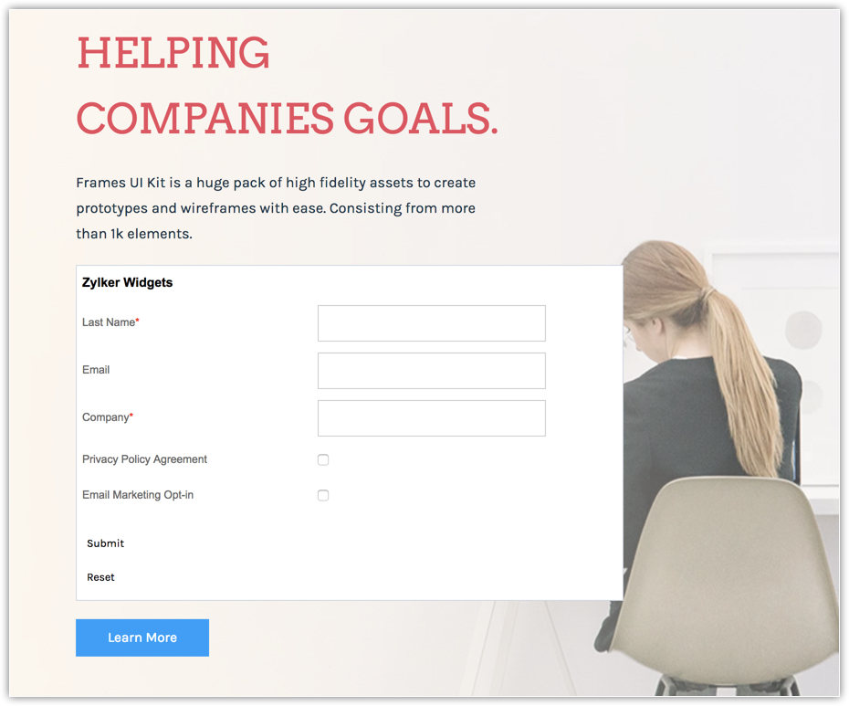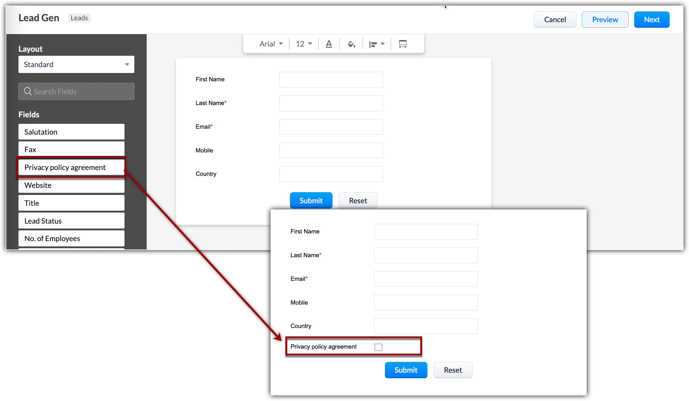 Este posibil să ai deja câteva formulare web Zoho CRM în uz, publicate pe site-ul tău. Trebuie să urmezi pașii de mai jos pentru a adăuga o casetă de bifat pentru consimțământ la acele formulare web. Aceiași pași pot fi urmați și pentru a include caseta de bifat pentru consimțământ într-un formular nou.