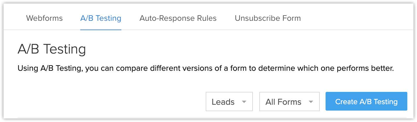 Procesul de testare A/B pentru webformulare în Zoho CRM