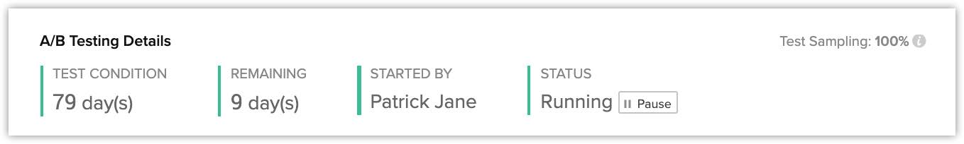 Alternativ, poți deschide testul A/B și fă clic pe butonul Pause de lângă Status în secțiunea Detalii testare A/B.