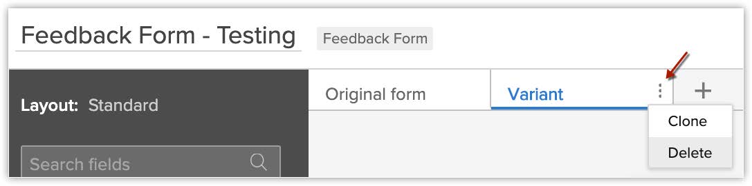 - Fă clic pe More în tab-ul Variant și apoi pe Clone sau Delete pentru a clona sau șterge o variantă.