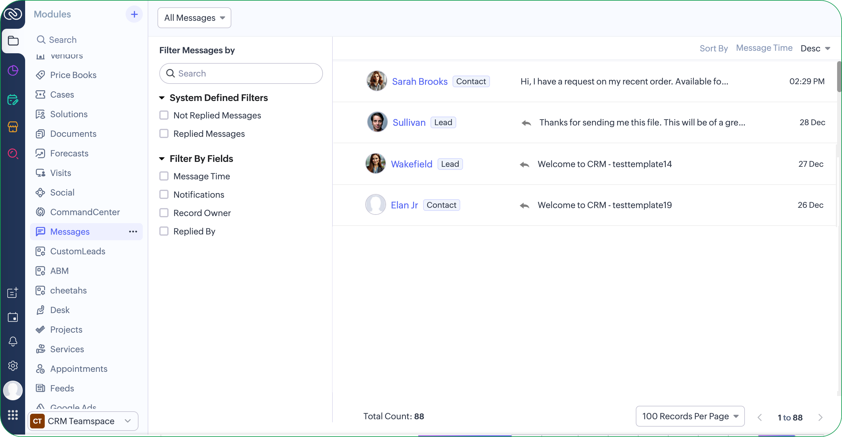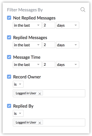 În modulul Messages, utilizatorii pot folosi următoarele filtre și seta criterii pentru a găsi rapid un mesaj: