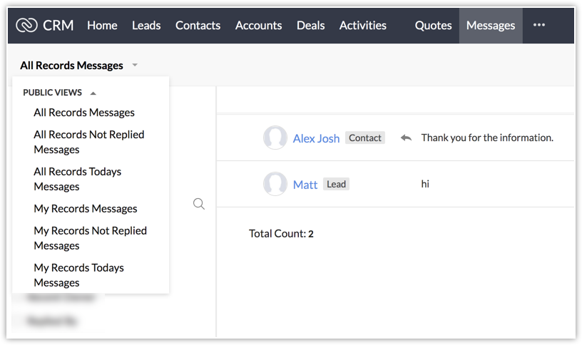 Utilizatorii pot seta și o vizualizare pentru modul pentru a vedea mesajele fără răspuns, toate mesajele trimise astăzi, toate mesajele fără răspuns etc.