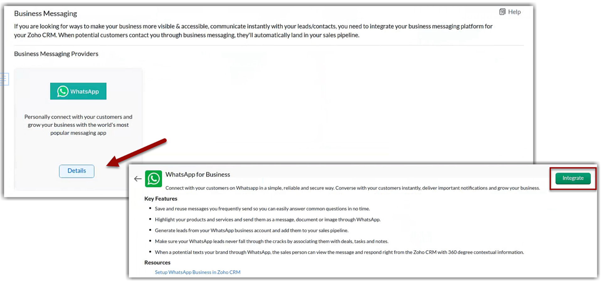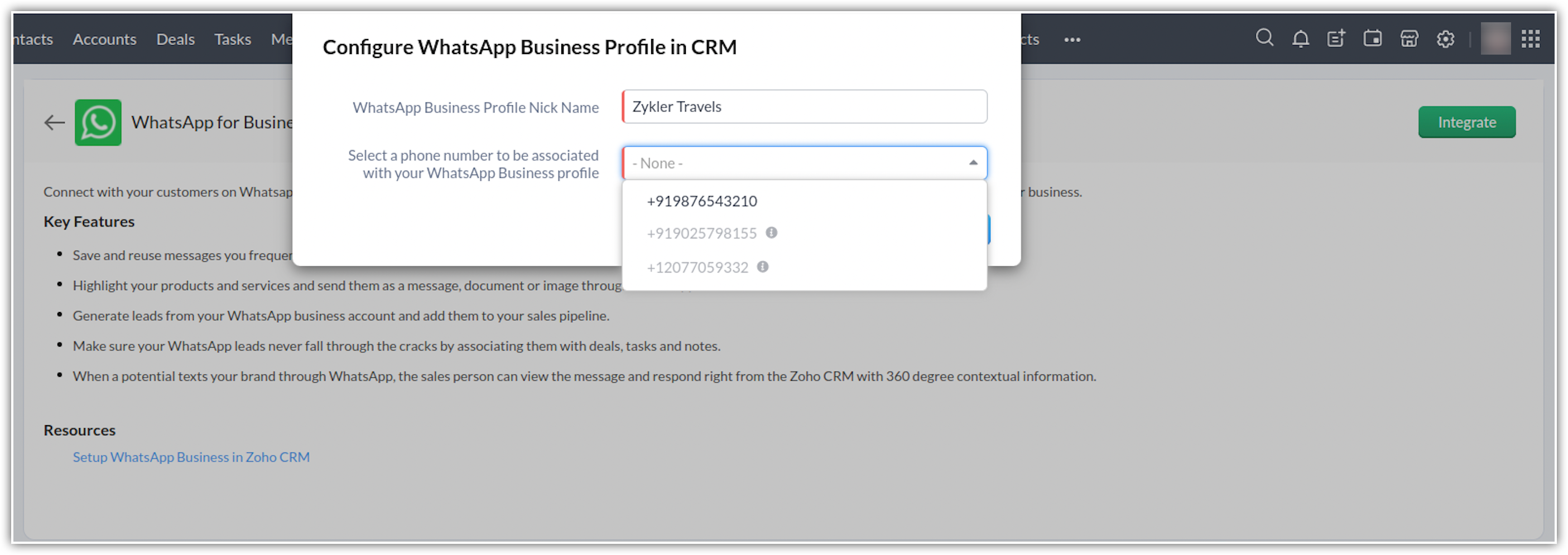 Pentru a integra WhatsApp Business cu Zoho CRM