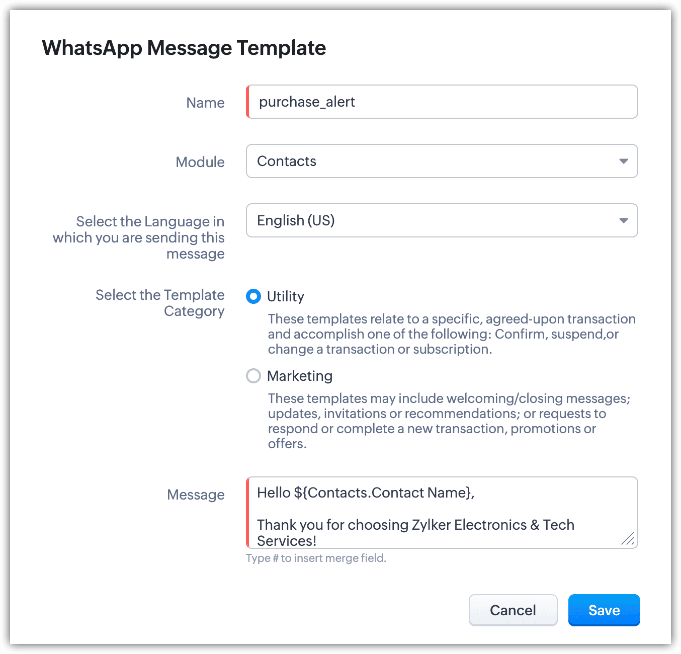 Integrarea serviciului de mesagerie WhatsApp cu Zoho CRM