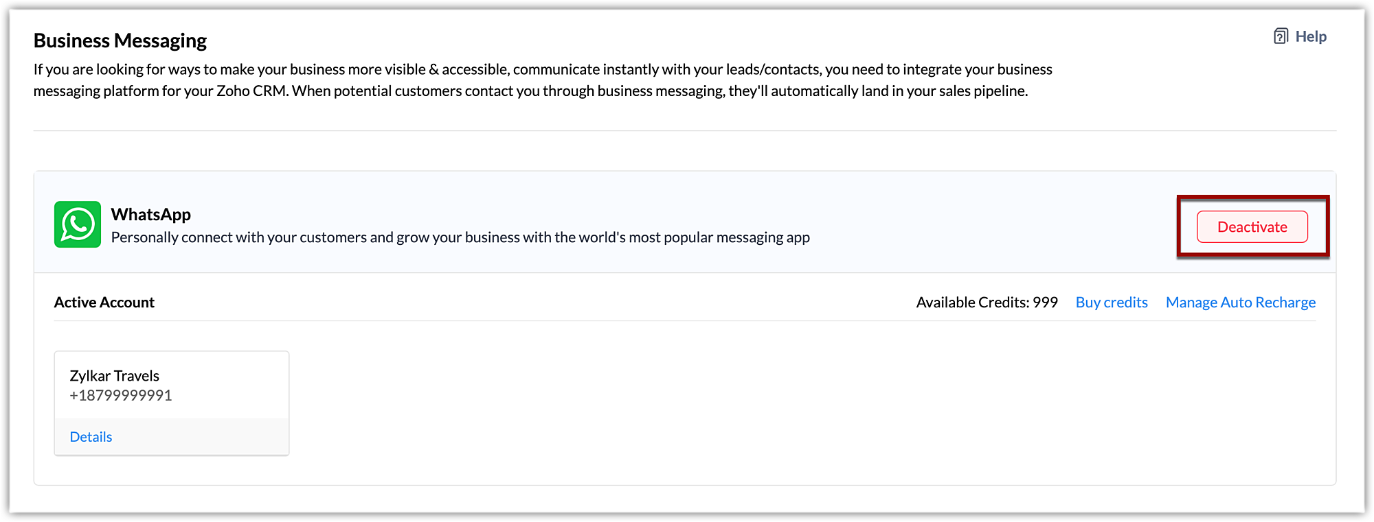 Dezactivarea integrării WhatsApp Business cu Zoho CRM