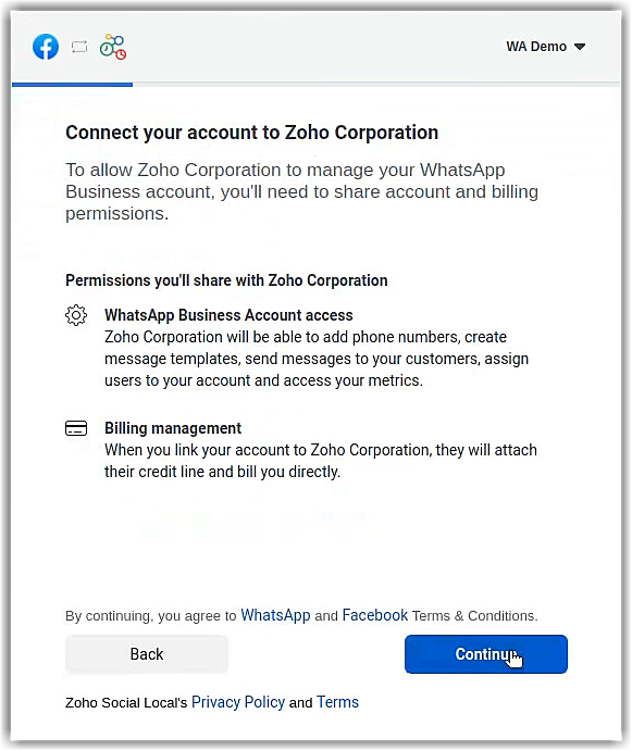 În pagina de solicitare a accesului WhatsApp, autentifică-te cu datele de conectare ale Facebook Business Manager.