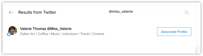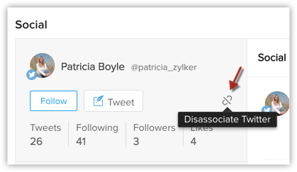 - Dacă handle-ul de Twitter este specificat în câmpul Twitter pentru un lead sau contact, profilul corespunzător va fi asociat automat la înregistrare.