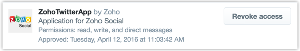 Aplicațiile pe care le-ai autorizat să interacționeze cu contul tău de Twitter vor fi listate. - Apasă Revoke access pentru aplicația Zoho CRM.
