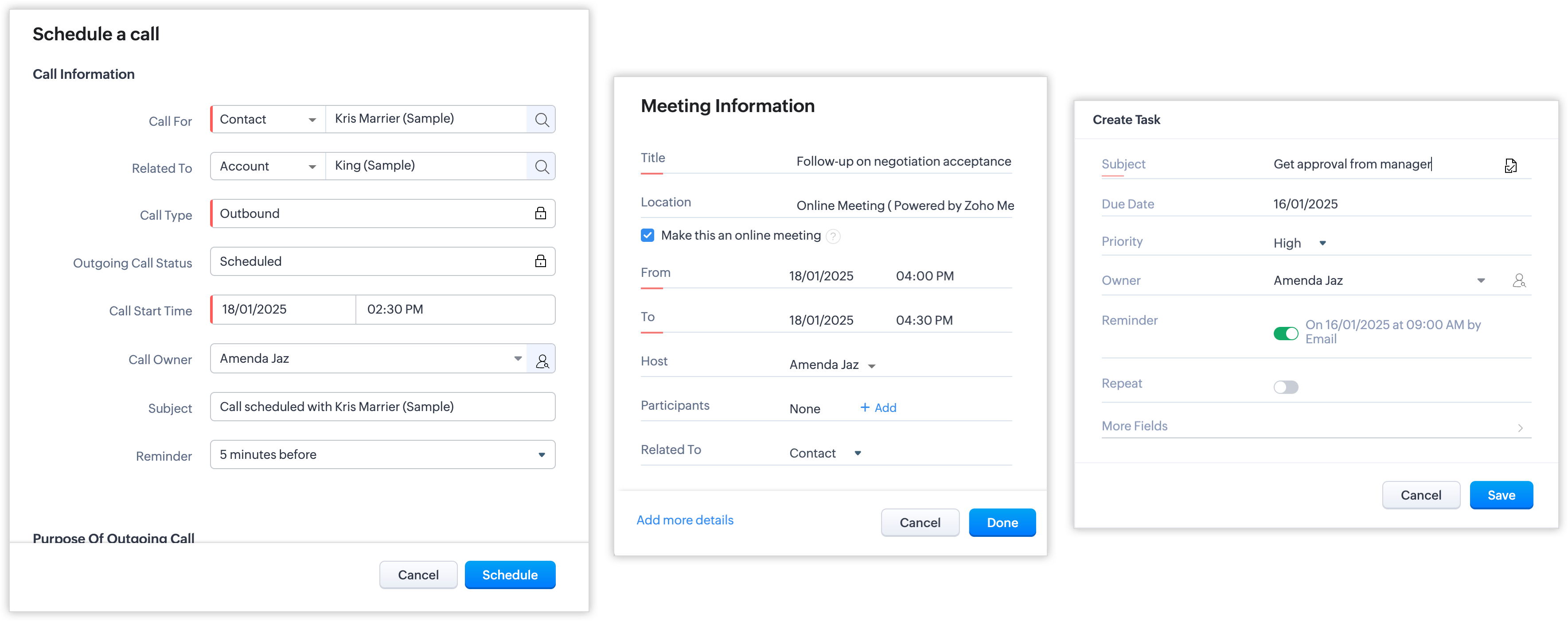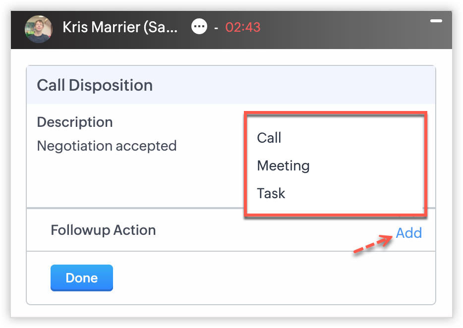 - Adaugă activități de urmărire precum descrieri ale apelurilor, apeluri, întâlniri și sarcini după ce apelul se încheie.