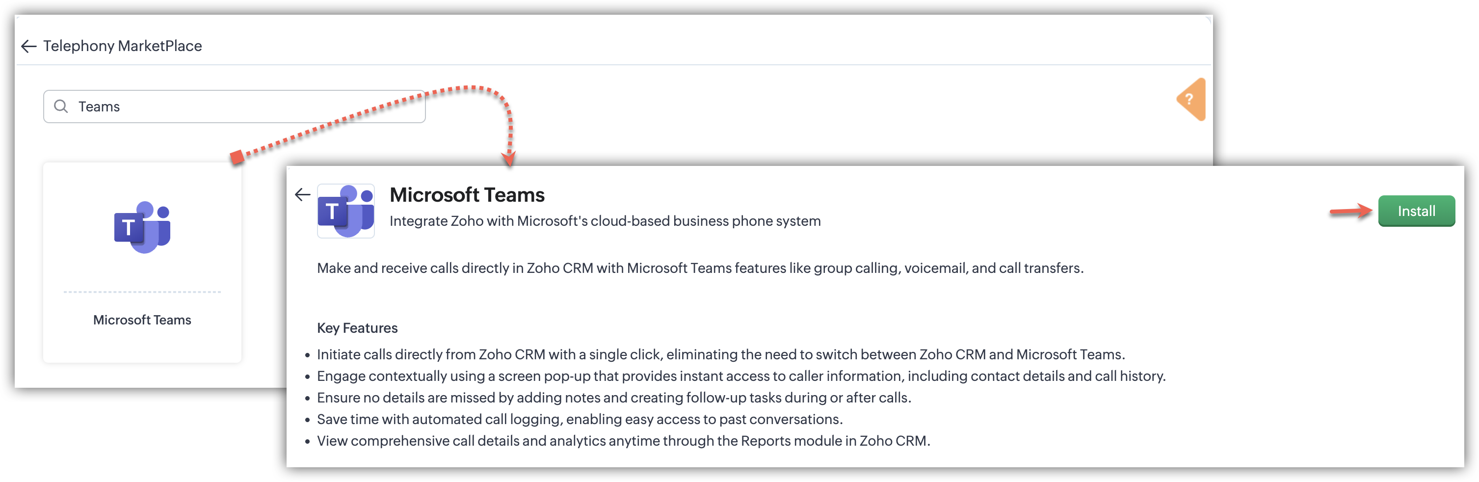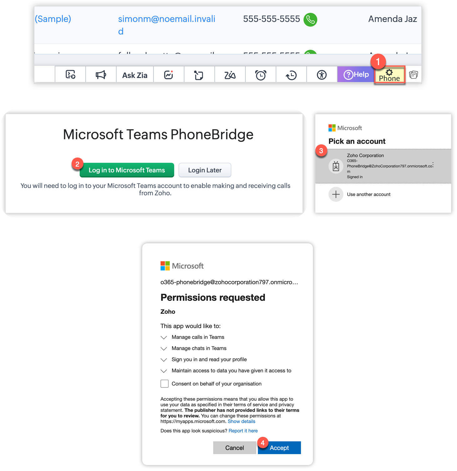 - Efectuează apeluri rapide din Zoho CRM folosind MS Teams Phone System.