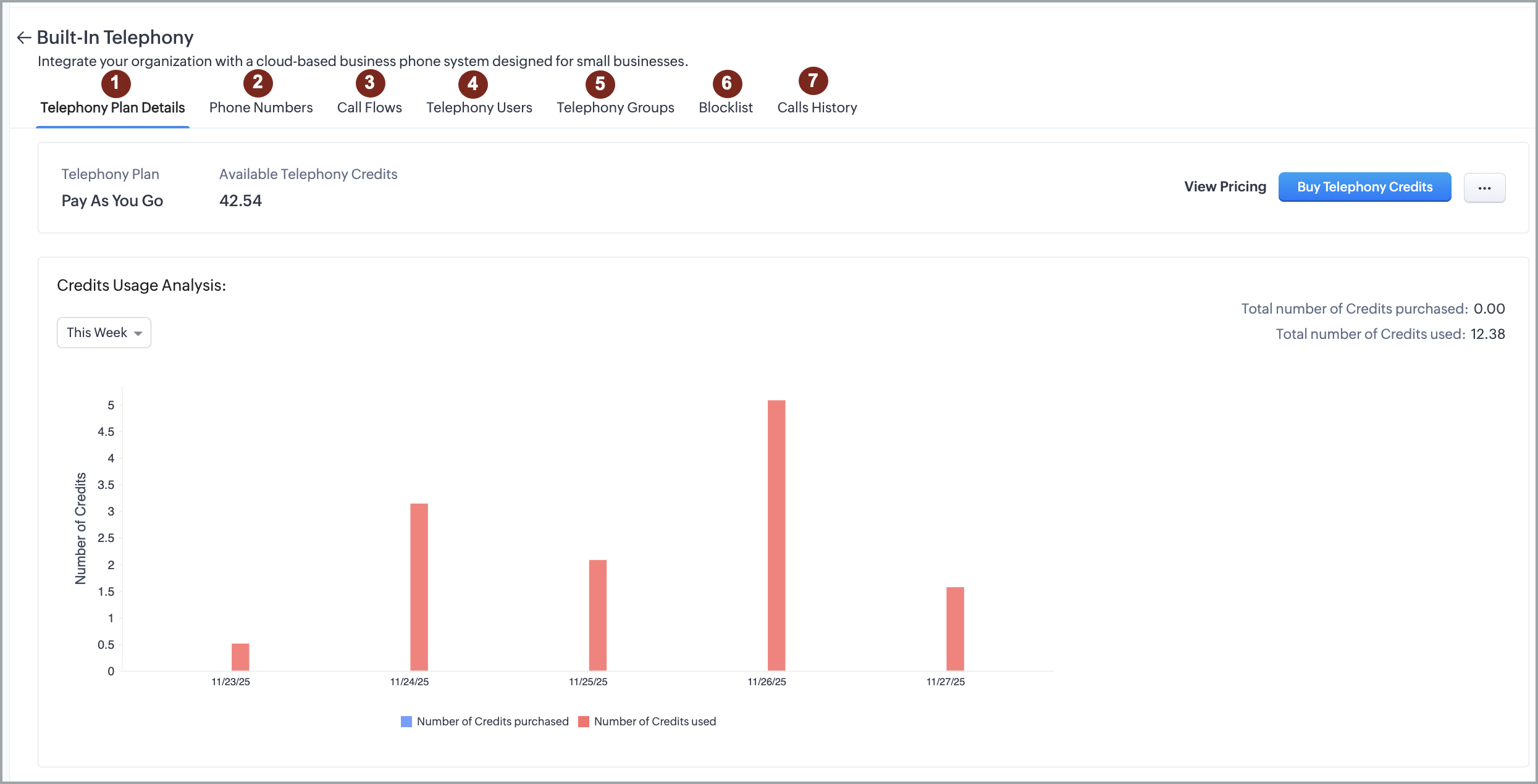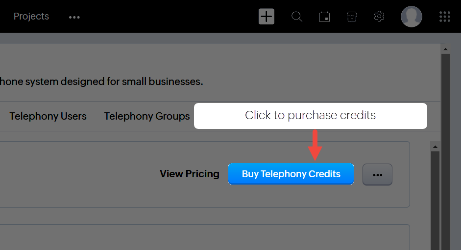 - Apasă Cumpără Credite Telefonie.