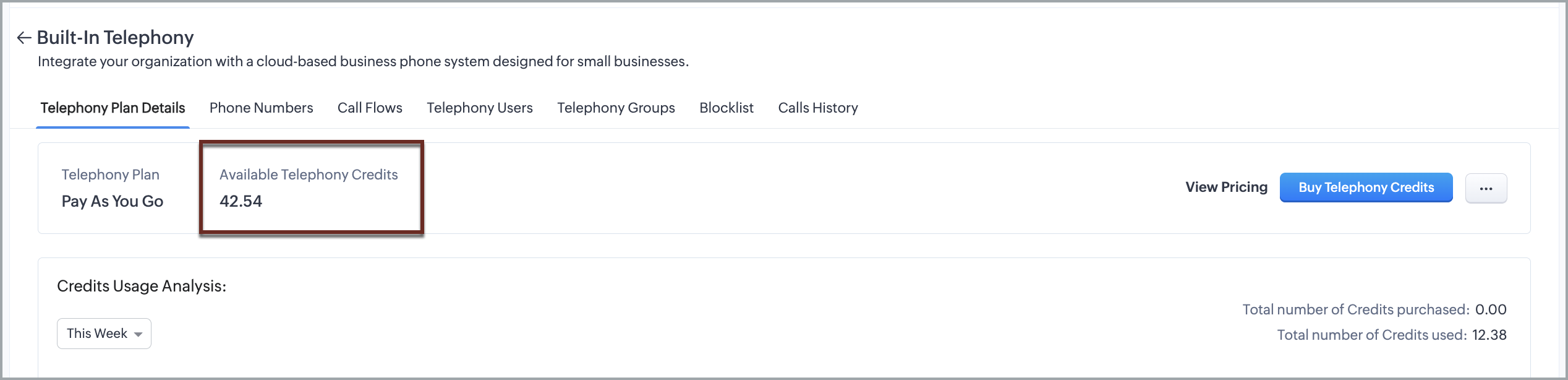 - Poți vizualiza numărul de credite sub Credite Telefonie Disponibile.