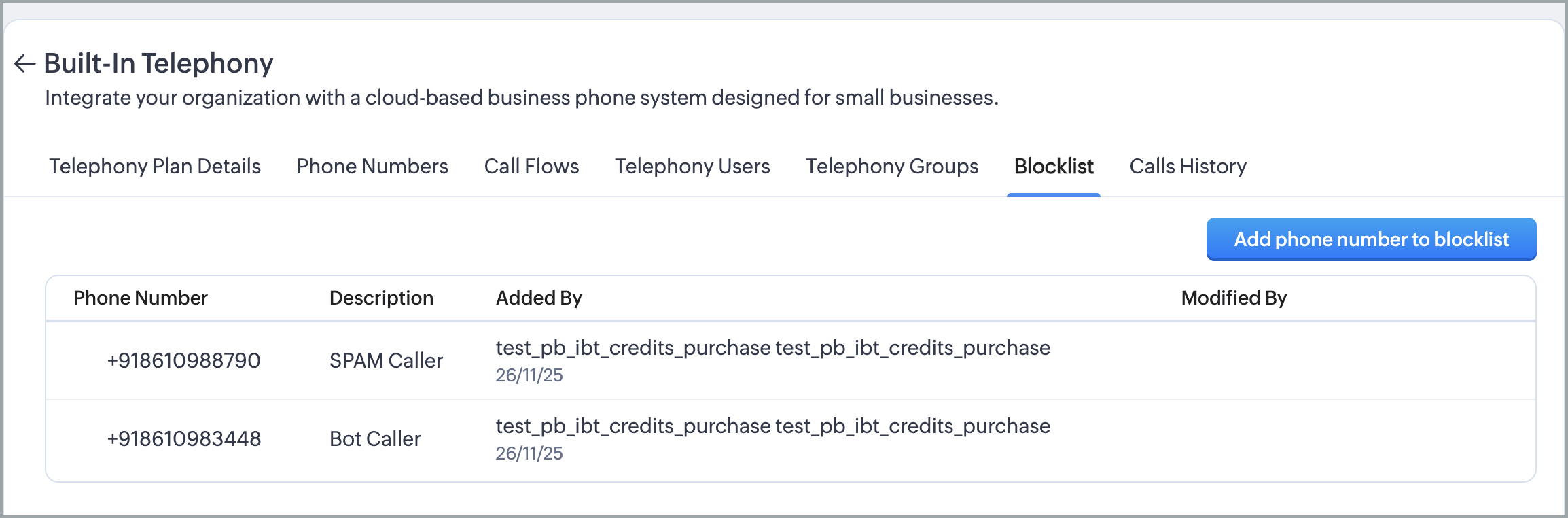 Pentru a bloca numerele să efectueze apeluri către sistemul tău, trebuie să creezi o listă de blocare.