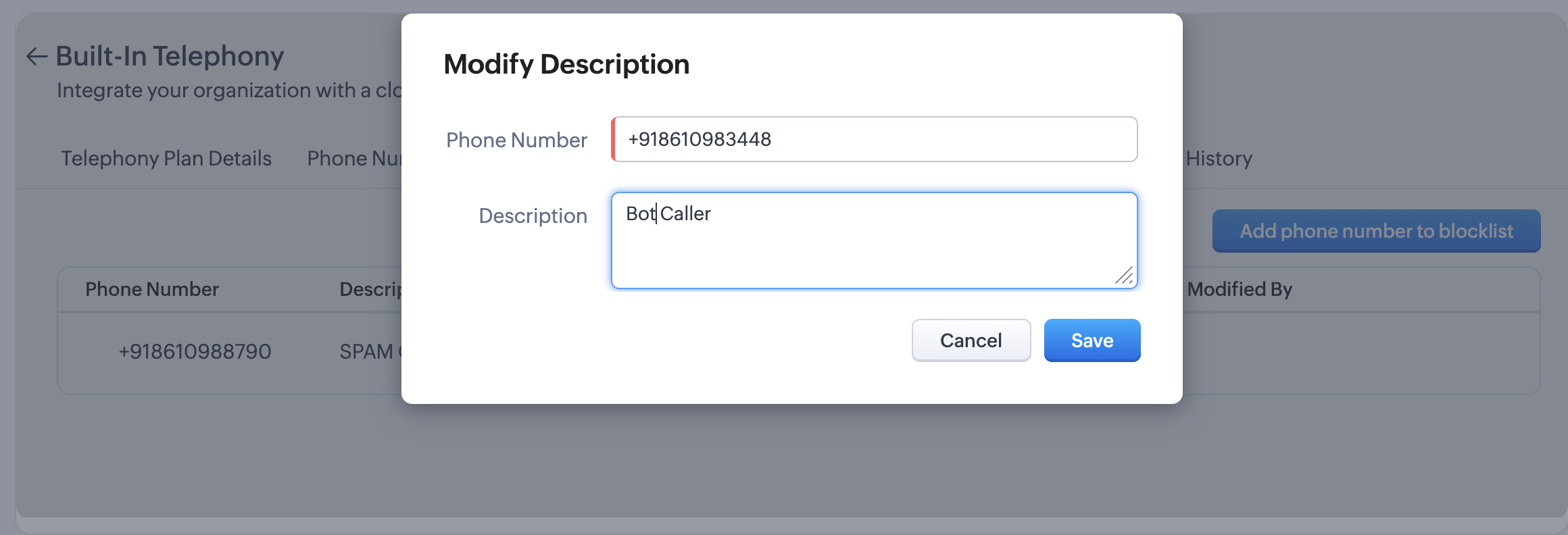 Editează Descrieri - Poți furniza descrieri pentru numerele blocate pentru a te ajuta să identifici de ce au fost adăugate pe listă.
