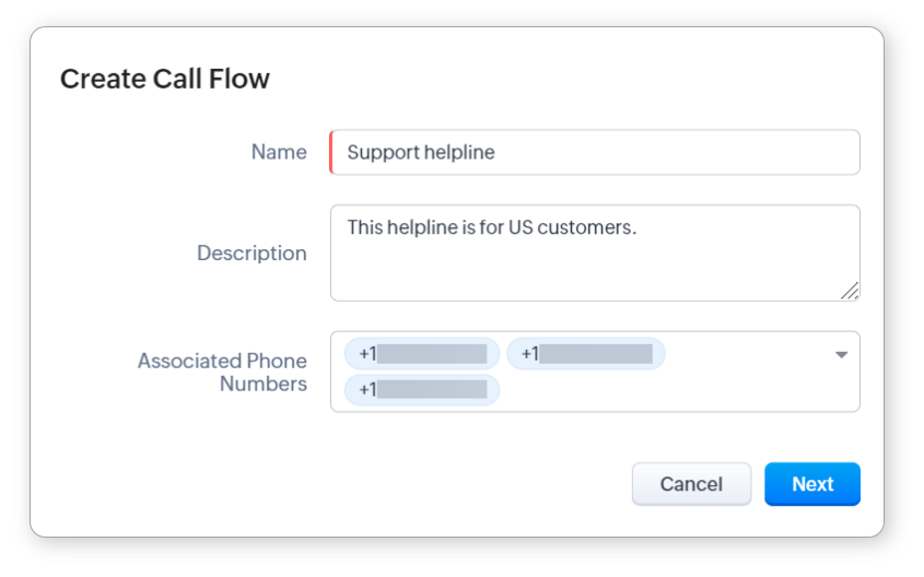 - În fereastra pop-up Creează Flux de Apeluri, introdu Numele fluxului și adaugă o Descriere.