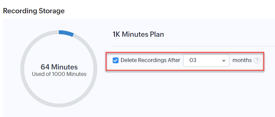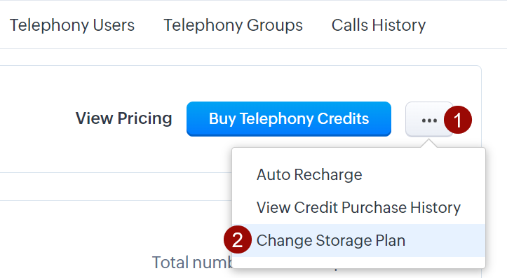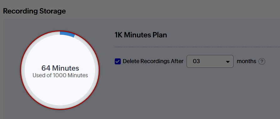 - Stocare înregistrări (lunar): Zoho oferă 1000 de minute de stocare gratuită pentru înregistrări pentru fiecare organizație. Dacă limita este depășită, înregistrările noi nu vor fi salvate. Pentru a extinde spațiul de stocare pentru înregistrări, poți face upgrade la planul de telefonie la una dintre următoarele opțiuni: