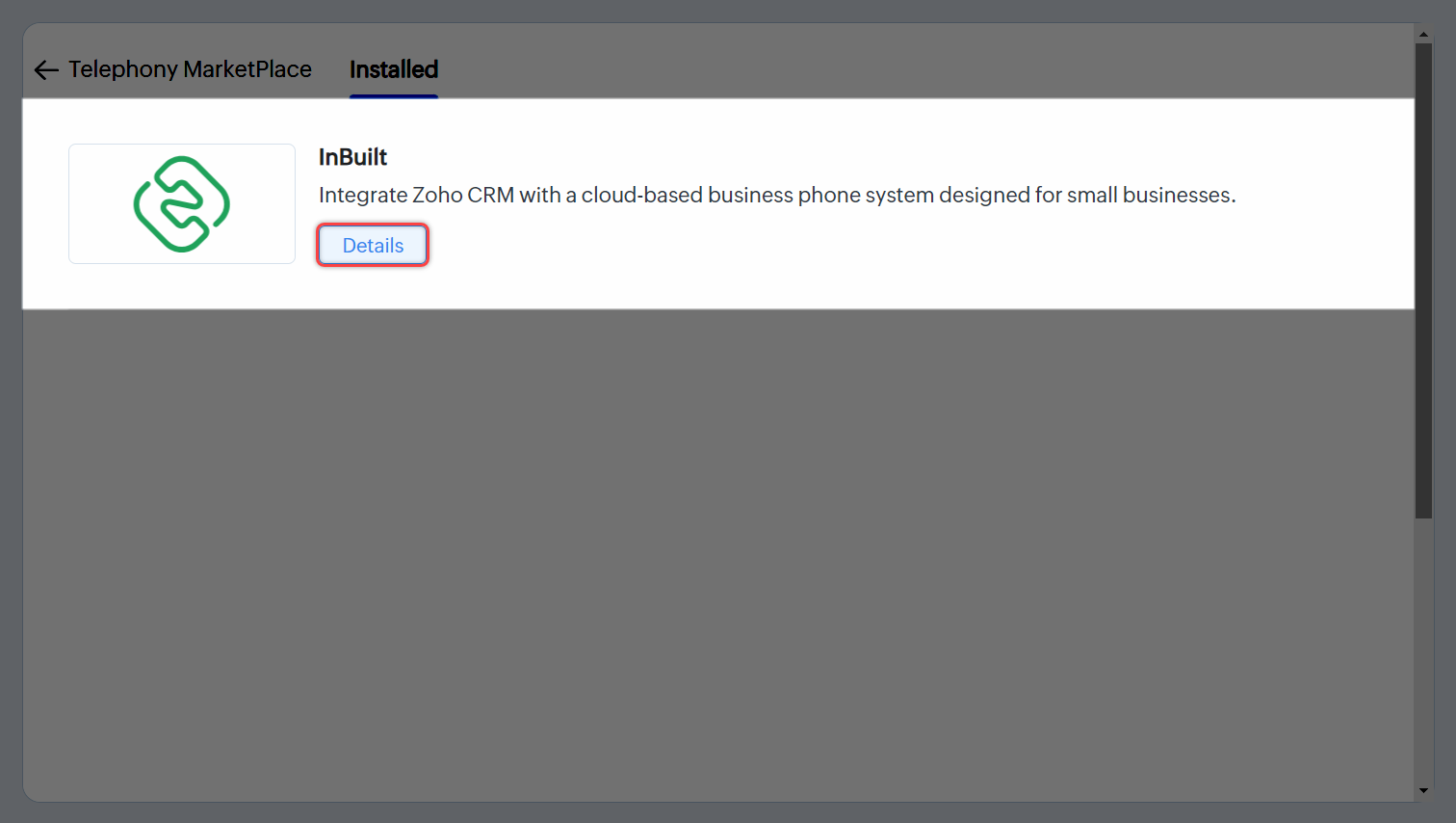 - Navighează la Configurare > Canale > Telefonie > Instalate > InBuilt > Detalii.