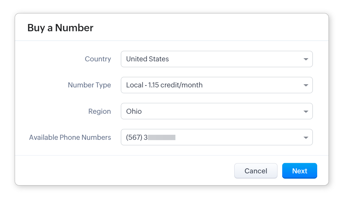 - Alege un număr din lista derulantă Numere de Telefon Disponibile și apasă Următorul.