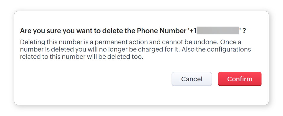 - În fereastra pop-up de confirmare pentru ștergerea permanentă a numărului, apasă Confirmă.