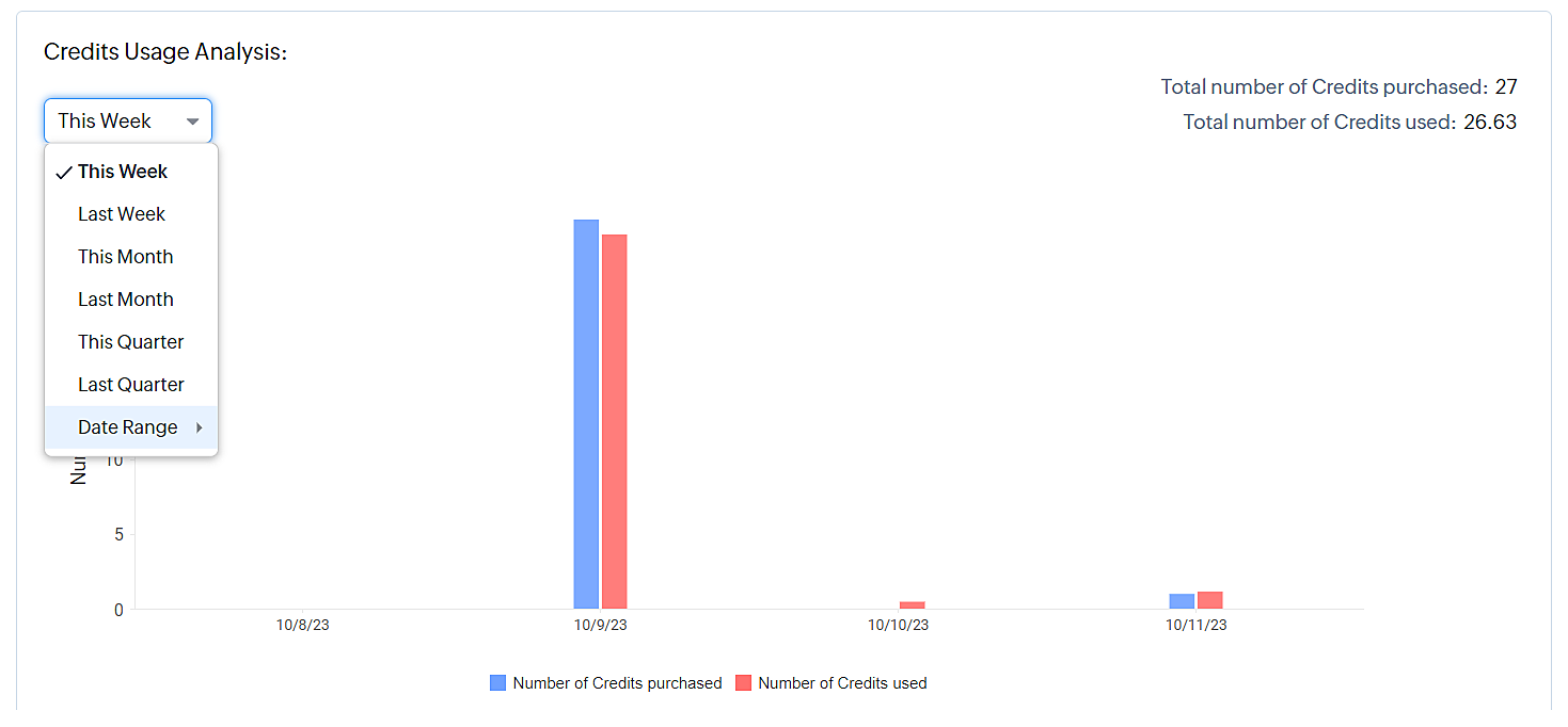 - Poți, de asemenea, specifica perioada de timp pentru care dorești să vezi utilizarea (Această săptămână, săptămâna trecută, această lună, luna trecută, acest trimestru, trimestrul trecut sau interval personalizat).