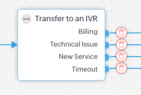 Poți configura IVR folosind opțiunile Apăsare Tastă și Meniu. Poți conecta fiecare dintre aceste opțiuni de meniu la o altă stare. Poți seta maximum 11 opțiuni de Meniu (0 - 9 și *).