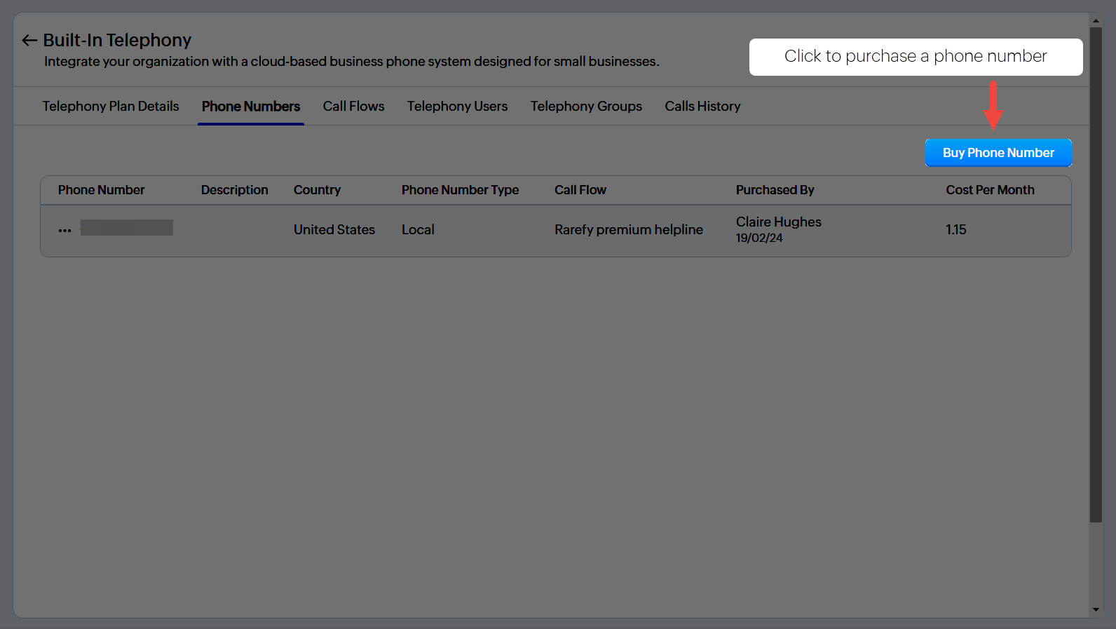 - În pagina Telefonie Integrată, apasă pe tab-ul Numere de Telefon.