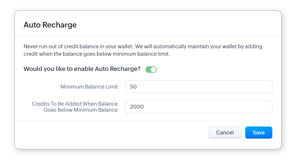 - Introdu numărul minim de credite pentru contul tău în câmpul Limita Minimă de Sold. O reîncărcare va fi inițiată ori de câte ori numărul de credite disponibile scade sub acest număr minim.