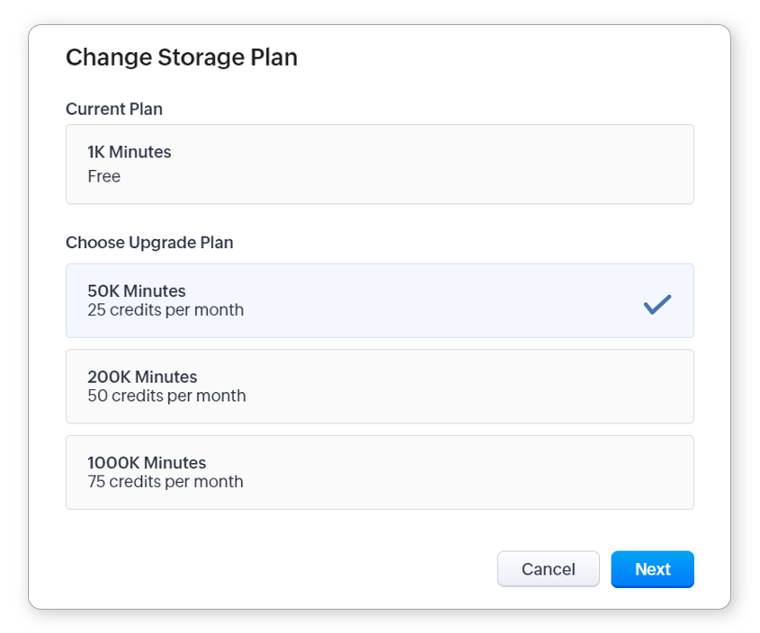 - În fereastra pop-up Schimbă Planul de Stocare, selectează planul.
