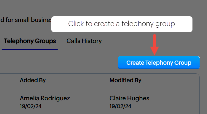 - Apasă Creează Grup de Telefonie.