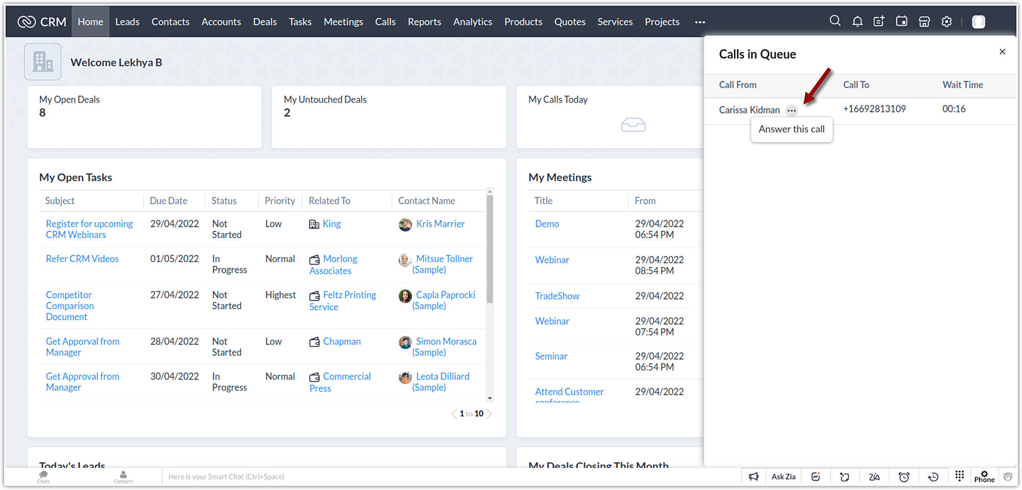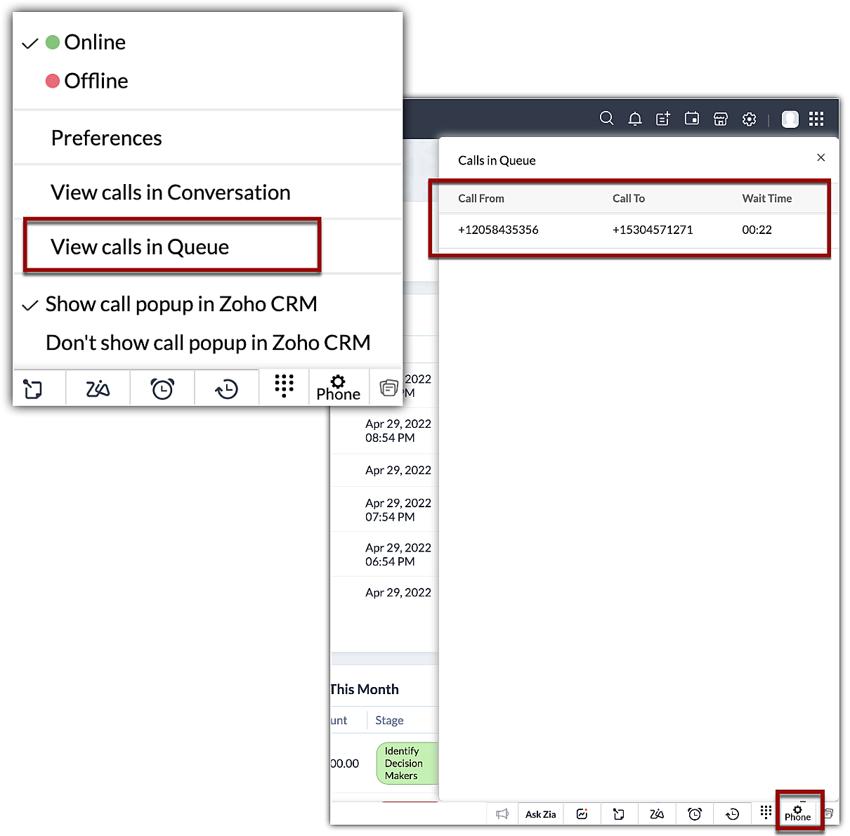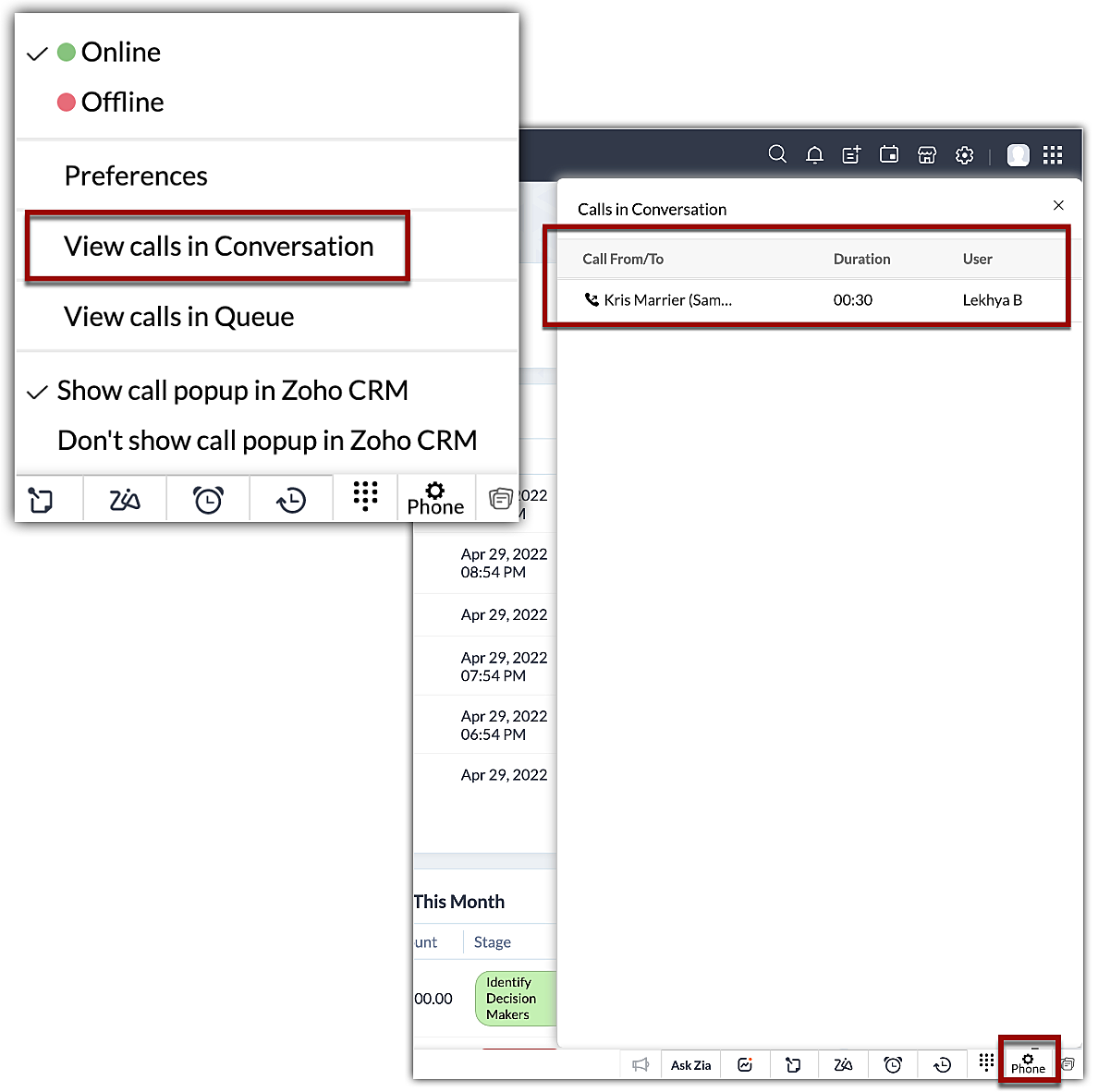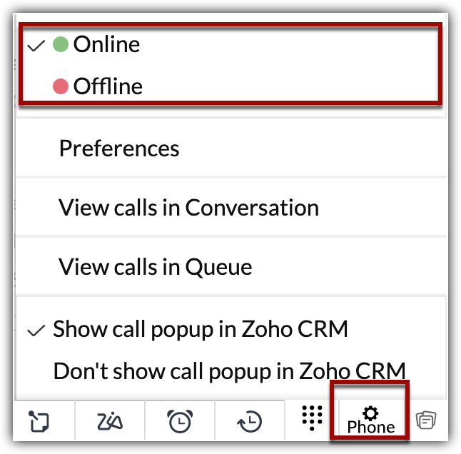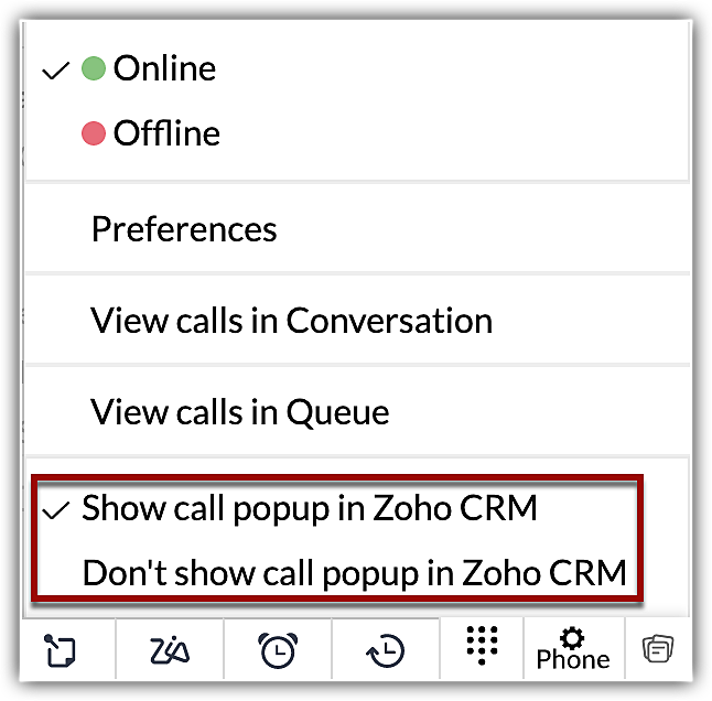 - Fă clic pe opțiunea Phone din partea de jos a Zoho CRM.