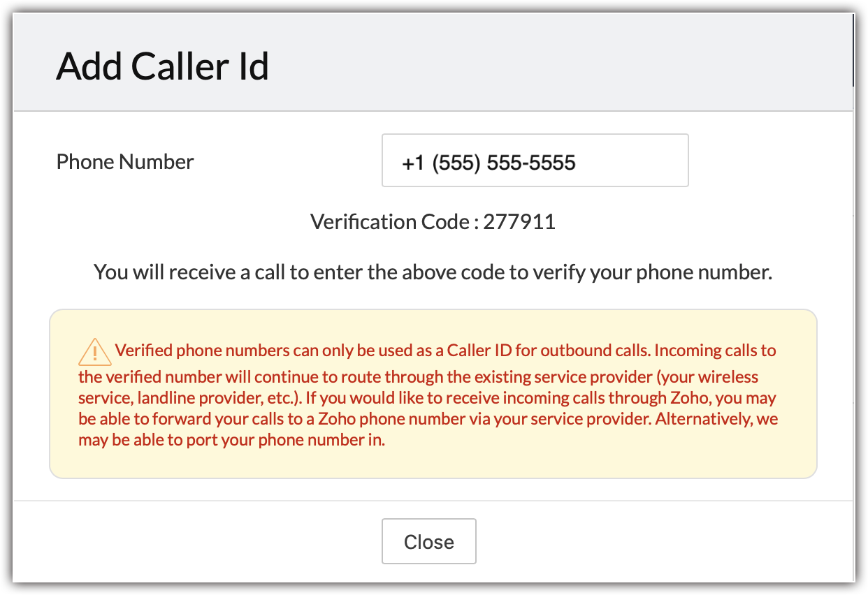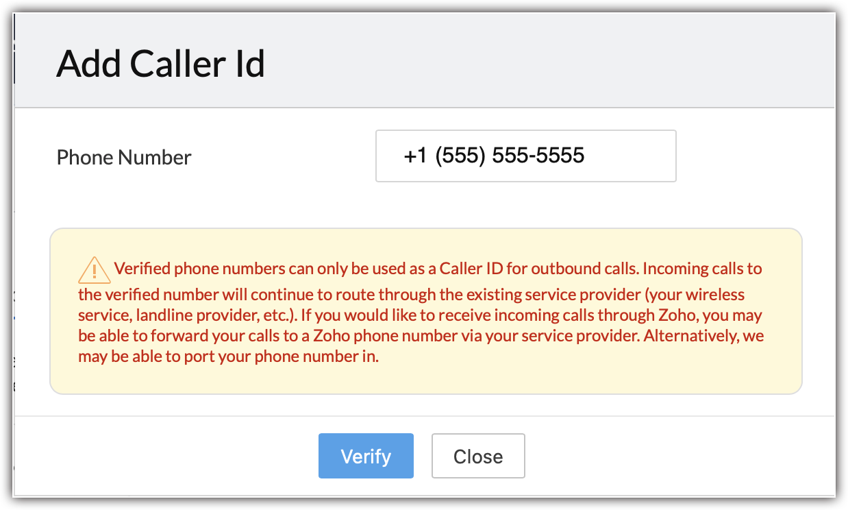 - Dacă dorești să primești apeluri prin Zoho, va trebui să contactezi furnizorul tău de servicii pentru a redirecționa apelurile către numărul pe care l-ai achiziționat în Zoho CRM. Alternativ, poți să ne contactezi pentru asistență la portare.