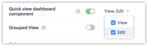 - Dacă un utilizator nu are permisiuni pentru Analiză și are permisiune pentru Quick View Dashboard, atunci componenta Quick View Dashboard nu va fi afișată pentru acesta.