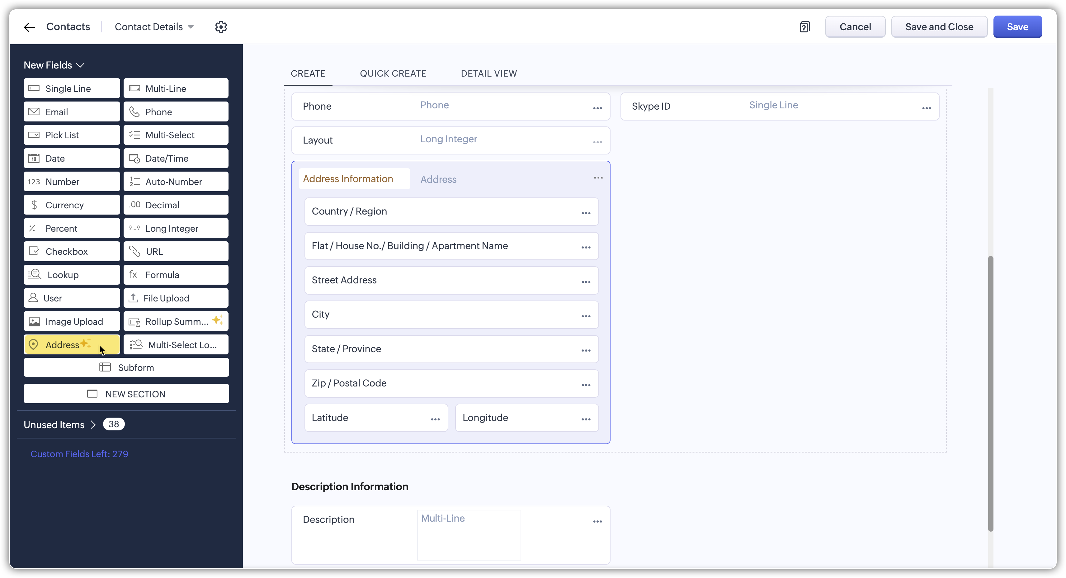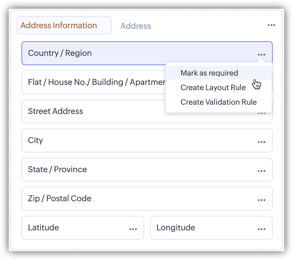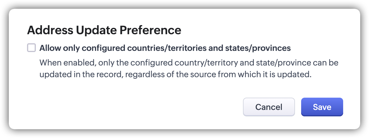 Câmpul de Adresă din Zoho CRM este conceput pentru a face capturarea și utilizarea datelor de adresă mai ușoară, structurată și mai fiabilă. În loc să distribui detaliile de locație pe mai multe câmpuri sau să folosești o singură casetă de text lungă, obții un câmp compus unic care organizează ordonat fiecare parte a adresei. Acest lucru facilitează introducerea datelor de către utilizatori și este mult mai util pentru raportare, filtrare, automatizare și planificarea teritoriilor.