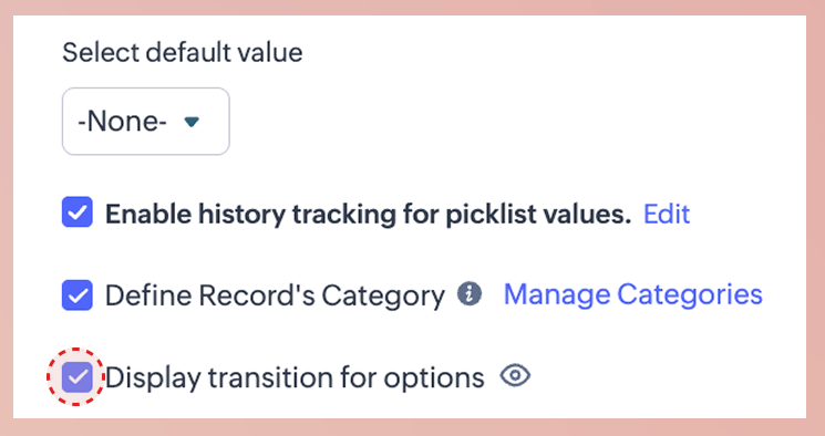 Aceasta poate fi activată doar pentru un singur picklist per modul.
