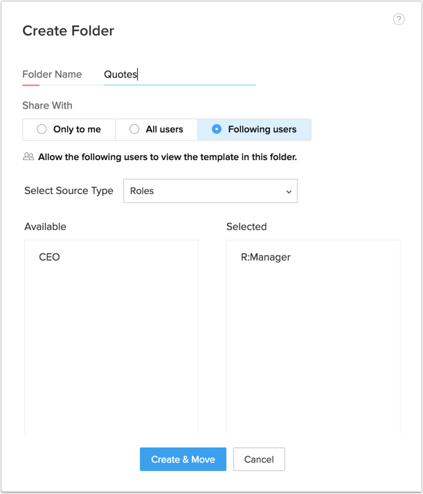 - Dacă vrei să creezi un folder la mutarea șabloanelor, dă clic pe + New Folder după crearea șablonului, introdu detaliile folderului și dă clic pe Create.