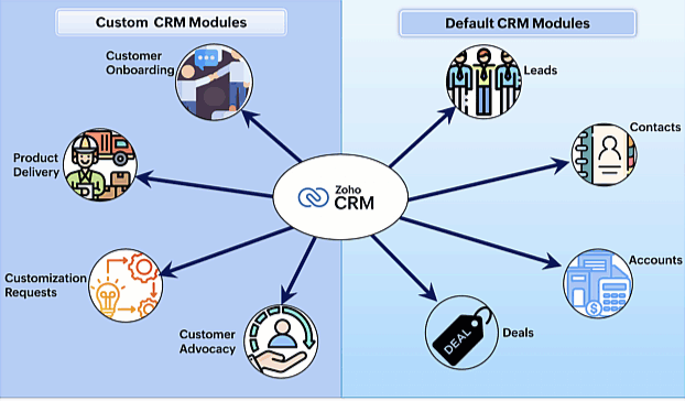 Având acest lucru în minte, Zoho CRM promite că Modulele Personalizate le permit utilizatorilor să-și personalizeze platforma CRM pentru a se potrivi nevoilor afacerii lor.