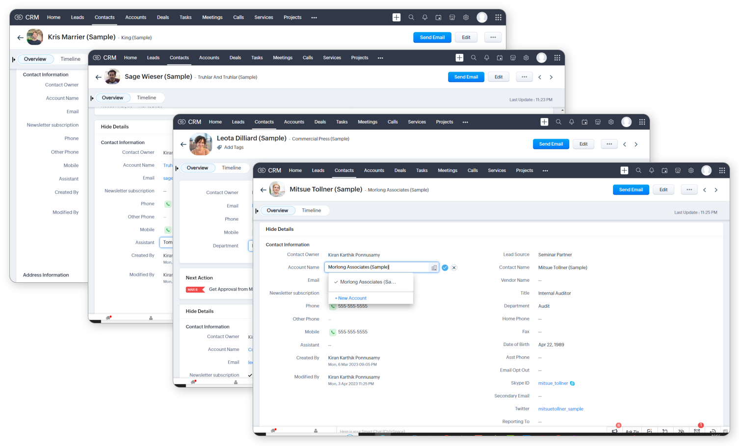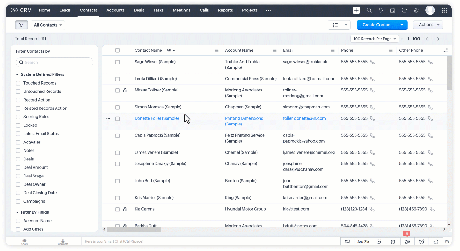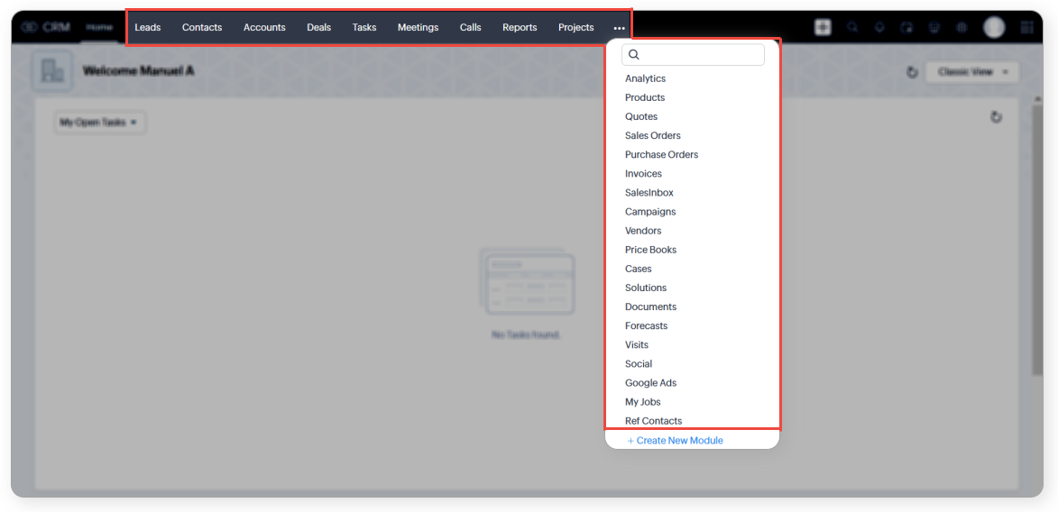 - Fă clic pe tab-ul [Modul] . Modulul poate fi Leads, Accounts, Contacts, etc.