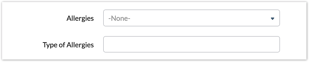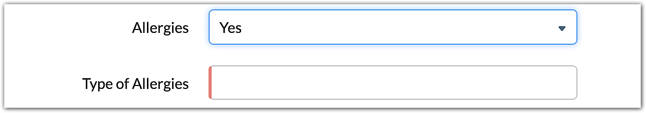 Una dintre secțiunile din formularul Universității Zylker este cea de Cerințe de cazare. Aceasta acoperă toate aspectele, inclusiv câmpuri legate de sănătate, cum ar fi alergii alimentare, alte alergii, handicap etc. Acum, când un recruter selectează Da la "Alergii", universitatea cere ca câmpul "Tip de alergii" să fie obligatoriu. Acest lucru poate fi realizat prin aplicarea layouturilor condiționale.Layouturi condiționale - Concept