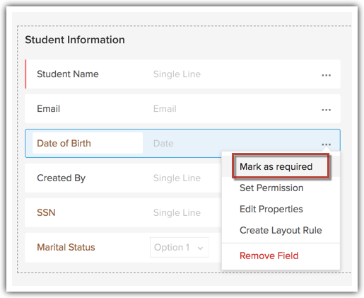 - Mergi la câmpul pe care dorești să îl editezi, fă clic pe pictograma Setări și selectează Marchează ca obligatoriu.