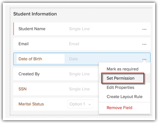 - Mergi la câmpul dorit, fă clic pe pictograma Setări și selectează Setează permisiunea.