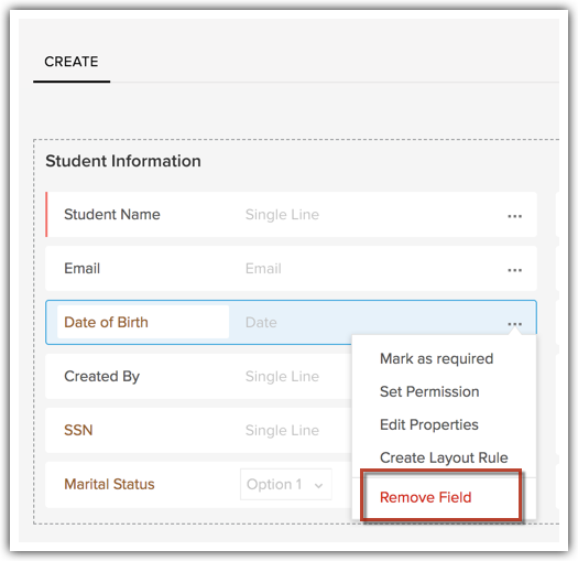 - Fă clic pe pictograma Mai multe și selectează Elimină câmpul.