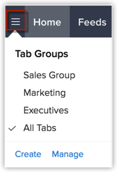 De exemplu, grupul de Vânzări poate folosi doar filele Leads, Contacts, Accounts, Deals, Reports și Dashboards. Astfel, poți crea un grup de file Sales Tabs și să oferi acces doar profilului Sales. Te rugăm să reții că utilizatorii vor putea accesa filele dintr-un Grup de file pe baza Permisiunilor la nivel de modul din profilul lor.
