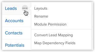 Zoho CRM oferă opțiunea de a redenumi numele filelor conform terminologiilor specifice industriei. De exemplu, fila "Leads" poate fi redenumită în "Candidates" într-un institut educațional. Utilizatorii cu privilegii de Administrator pot schimba numele filelor. Aceste modificări se reflectă în toate paginile standard ale interfeței de utilizator.